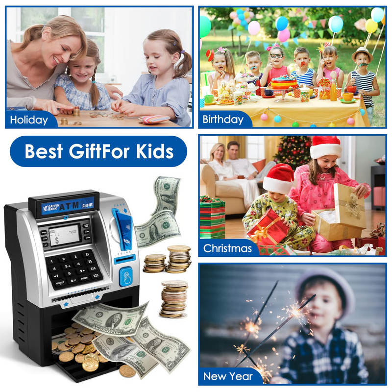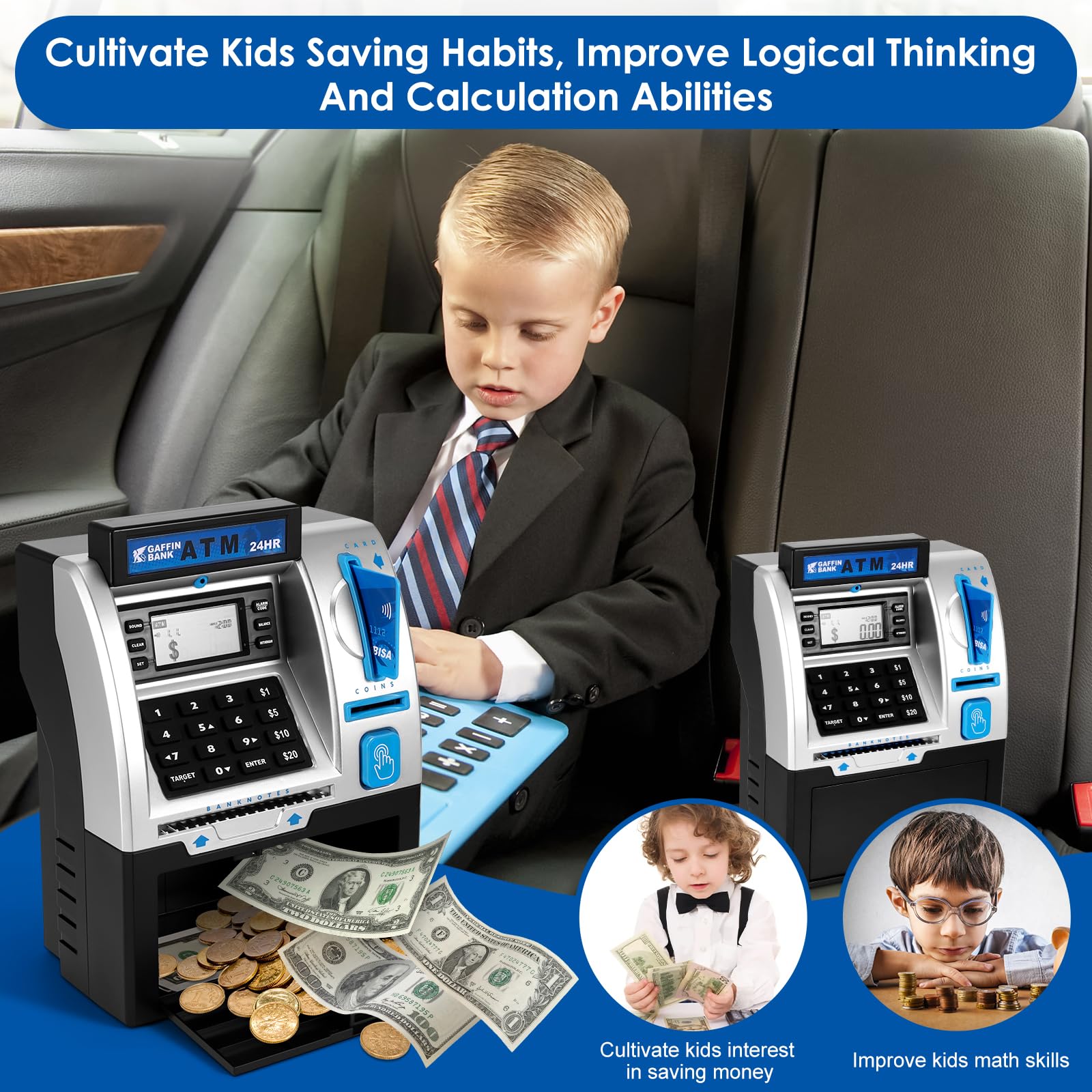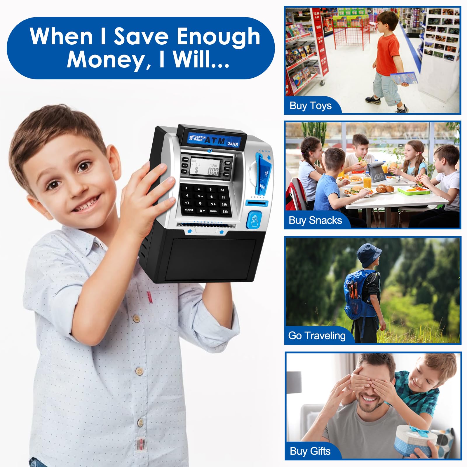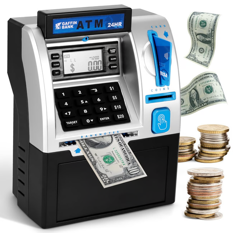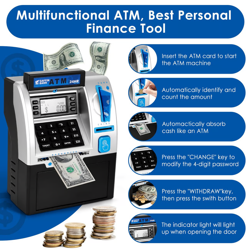 Realistic ATM Experience with Card & PIN: Bring the banking experience home with this ATM piggy bank for real money! Use the included card and PIN to access your mini ATM. Teenagers can simulate real deposits and withdrawals, making saving money fun and educational.