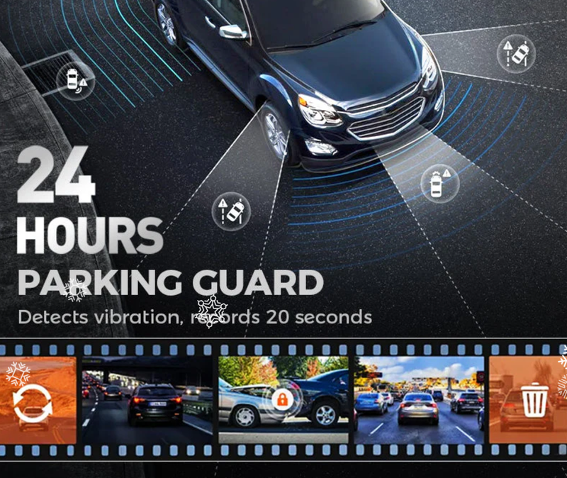 ADVANCED PARKING MONITORING: Stay protected even when parked. The dash cam features motion detection and parking surveillance, with a date display on footage to record any activity around your car.