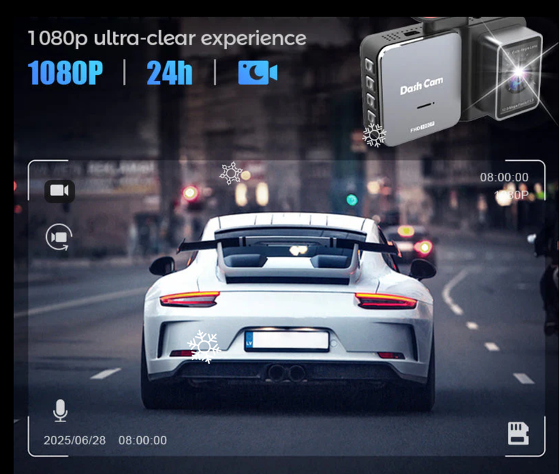 G-SENSOR AND CYCLE RECORDING: The built-in G-sensor automatically detects collisions and locks footage to prevent overwriting. Cycle recording ensures seamless operation with continuous video capture, even during long trips.