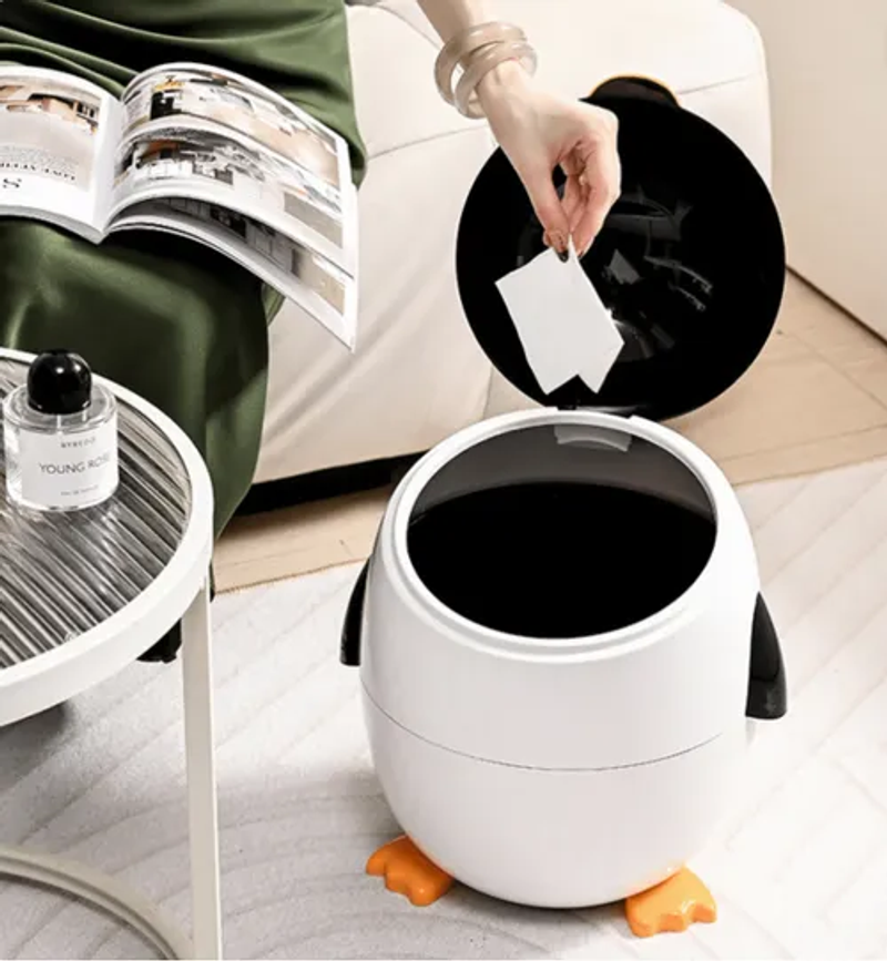 • 1 × Cartoon Penguin Trash Can (with flip-top lid)