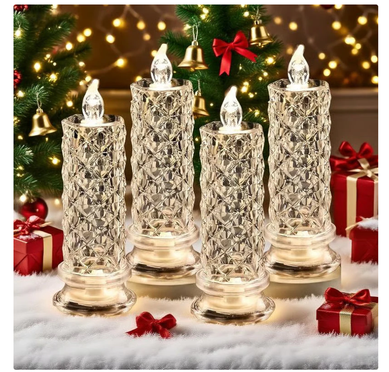 Set of 4 LED Crystal Candle Lights Create a warm and romantic ambiance instantly.