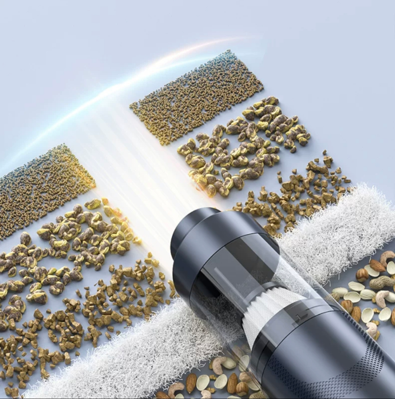 SLADDÖS KRAFTFULL SUG: Njut av sladdlös bekvämlighet med enknappsstyrning för två hastigheter. Utrustad med en höghastighetsmotor levererar den kraftfull sugkraft på 15 kPa för att enkelt suga upp fint damm från skrivbordet och envisa smulor djupt inne i bilsätena.