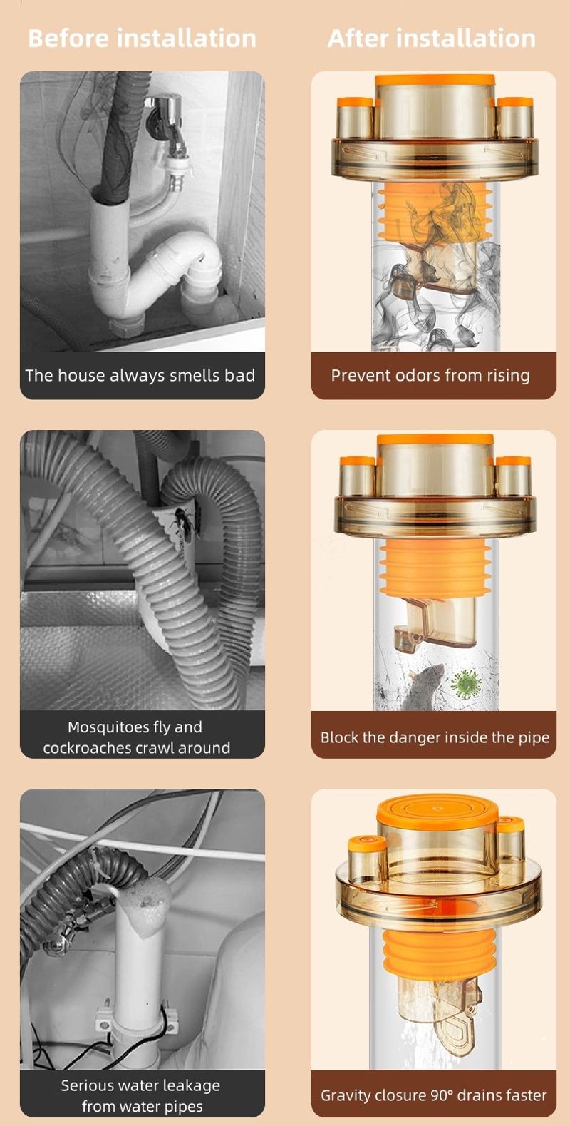 Use this product in kitchens, bathrooms, or any other areas that require efficient water drainage. It ensures smooth water flows and prevents unwanted odors from spreading through your pipes.