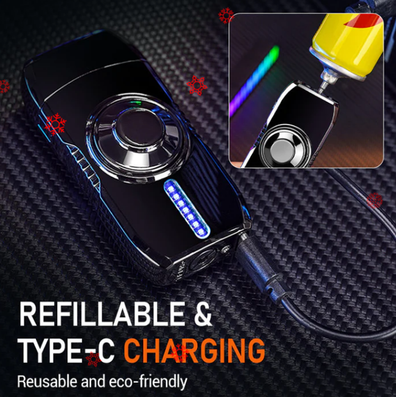 CREATIVE DESIGN: A versatile tool that blends everyday utility with engaging interaction. This lighter includes a freely spinning mechanism for tactile stimulation and a dynamic LED interface that offers various lighting options. It delivers both interactive enjoyment and practical light functionality in a portable format.